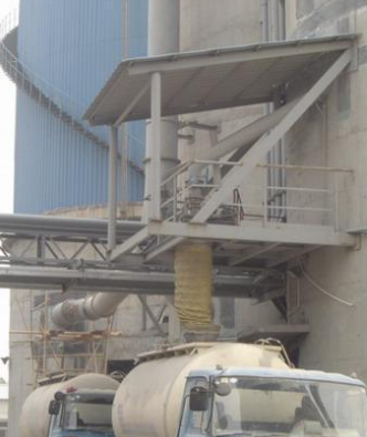 水泥散裝機(jī)主要由“卸料閘門(mén)”、“輸送斜槽”、“彎頭”、“下料接管”、“散裝機(jī)”、“除塵器”、“斜槽風(fēng)機(jī)”等組成。